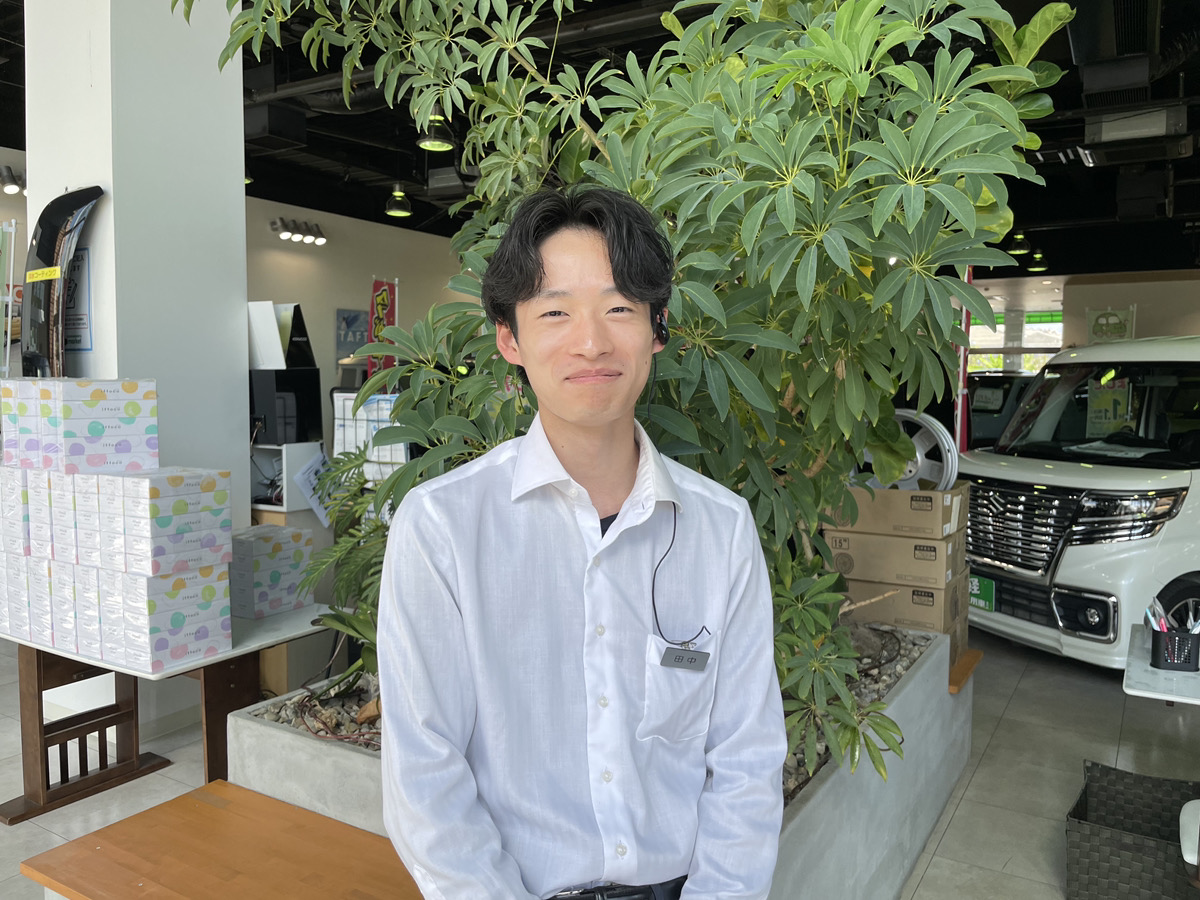 接客内容は主に車の販売となる営業で、保険の提案も担当しています。